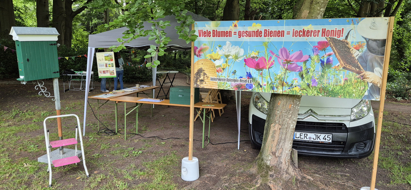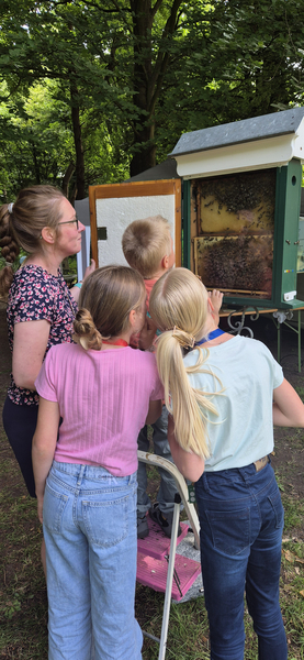Hier hatten Kinder die Möglichkeit an einem Schaukasten die Bienenkönigin zu suchen.